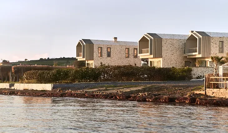 A recording studio and boutique hotel in Cunda aligns acoustic precision with local material logic and co-created design.