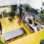 The workshop and the adjacent meeting space are completely open and fully visible from the street, thus exposing the work of the architect to the passers-by. Halfway between a desk and a shop, space redefines the classic architectural practice. In the center, the original structure of the building is highlighted in fluo. On one side, there is a large white volume containing the meeting room, the kitchen area and the stationery. On the other hand, the central volume is cut out in a hardware library recalling the displays of the general store and allowing the light to pass to the meeting room, isolated by a wall of frosted glass.