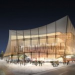 The program is arranged in an open floor layout on the second floor that contains the kitchen, family room and dining room. On the third floor, four bedrooms are arranged around a central social gathering space.