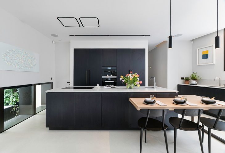 Located a short distance from leafy Holland Park, Kenure House is a unique modern dwelling comprising of a Victorian townhouse and two adjoining mews houses. This newly built turnkey residence spans 3,800 sq ft of internal area to include five bedrooms and generous lateral living spaces, complete with a large integral garage and two-storey living wall. The mews elevation offers refined contemporary architecture whilst the Georgian façade has been restored to its former elegance.