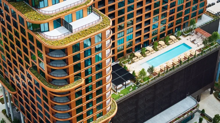 A 42-storey residential tower shaped by Emirati textile geometry and environmental performance.