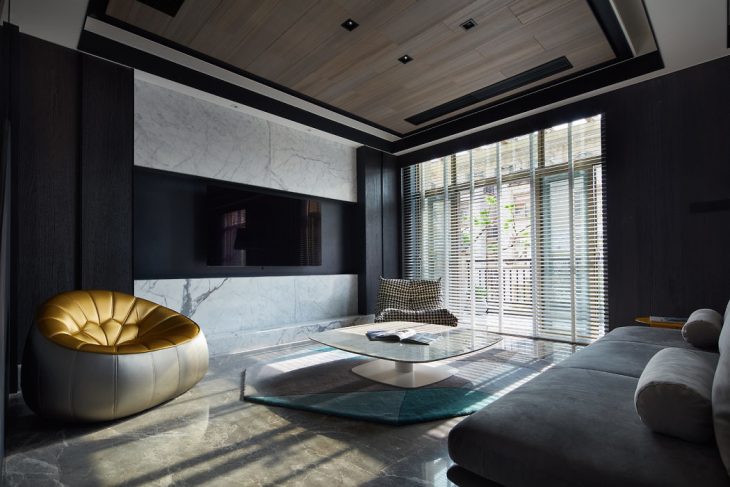 From the architects: Speaking of black, white, gray, there are always associated with “sexlessness”. Actually, it is a walking aphrodisiac. The condensation of black, pureness of white, coordination of gray, a deeper desire is hidden in the interaction of the three, making space like a cold and hot poem.