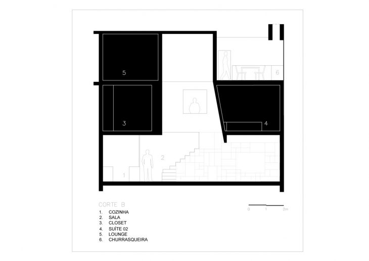 It proposes, on one hand, new views by different openings, and on the other hand subtle changes of light and shadow throughout the day and year. The angular walls create a rich game of dissolving whites in the central space, making the edges appear and disappear by each hour. The internal faces conform different rooms, giving them amplitude and different functions, as headboards or benches for example. It is the construction of this void that gives meaning to the entire space by which life unwinds.