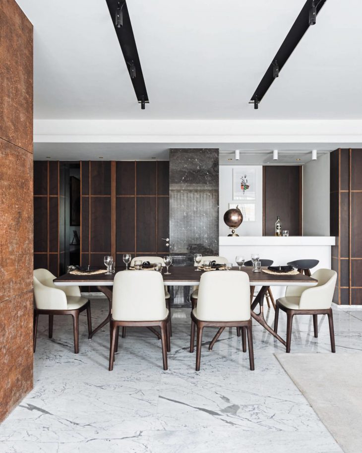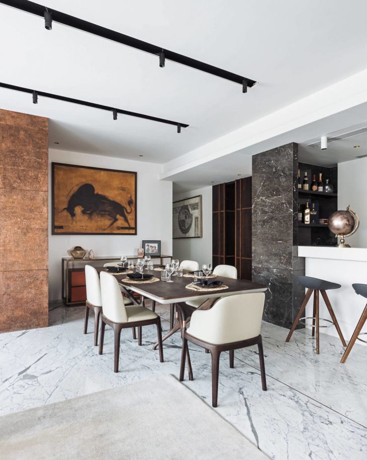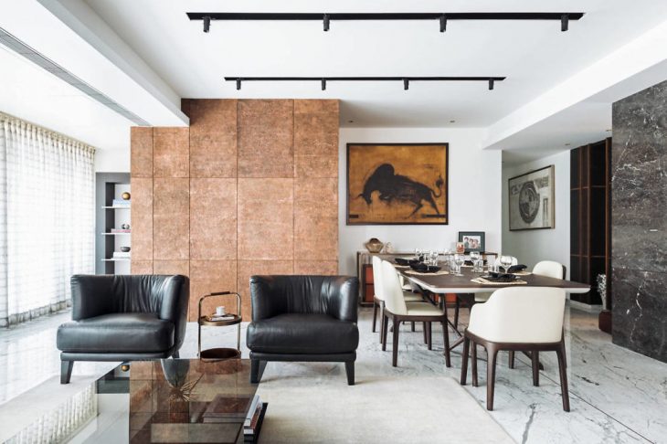 SHROFFLEÓN designed this stunning contemporary 5 bedroom apartment located in India, in 2017. Take a look at the complete story after the jump.