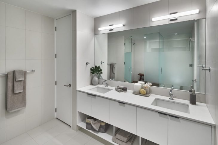 From the architects: DC’s newest upscale condominium property, showcases an architecturally unique and dynamic aesthetic that incorporates exemplary urban design, architecture and landscape elements, fit with a cantilevered glass building facade bathed in natural sunlight with vibrant cityscapes framed through floor-to-ceiling windows. Westlight’s designer model unit was fitted by Braunohler Design Associates and Josh Hildreth Interiors.
