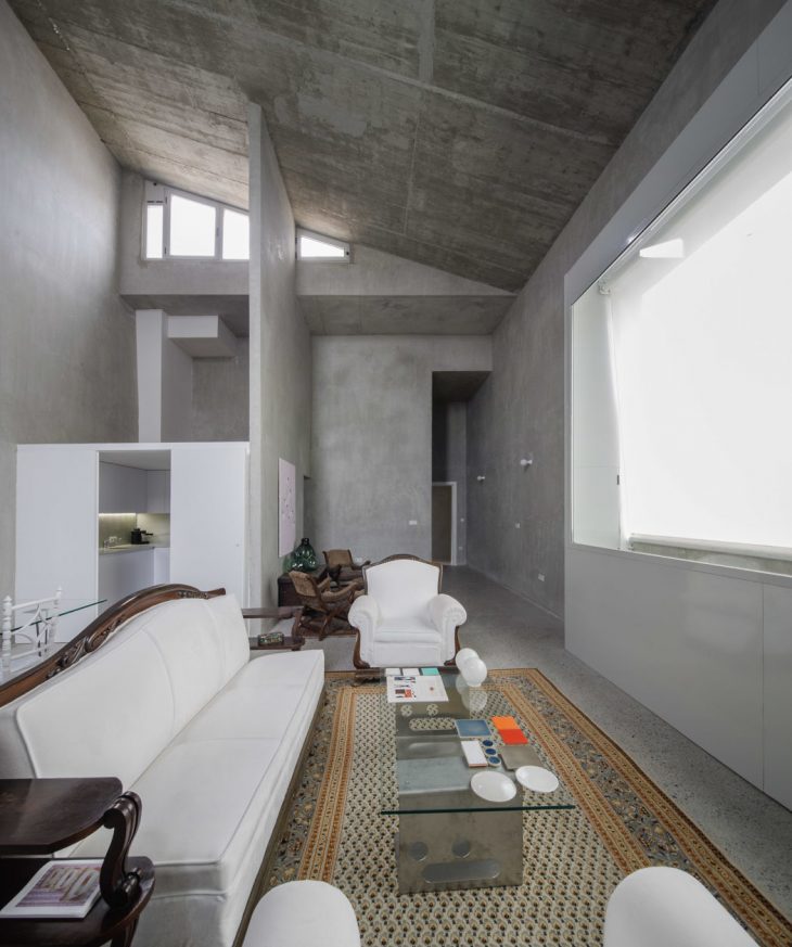The walls, floors and ceilings are all in exposed concrete. By designing following principles of bioclimatization, energy costs are also reduced and the building is of almost zero energy, because of the great continuous insulation and adequate orientations. The system has also made it possible to eliminate the pillars and give full continuity between the garden and the parking area under the building, which is facilitating for not very experienced drivers. For the same reason, the box of the stairs has been rounded.