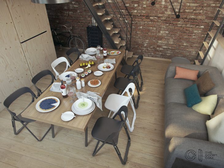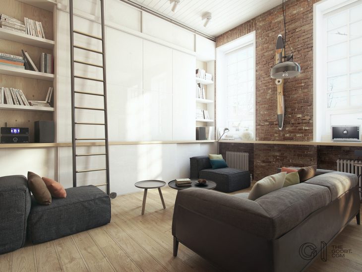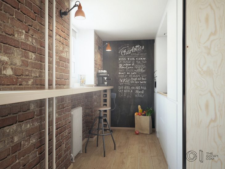 The Goort designed this inspiring one bedroom apartment with total area of 35.7 sq.m in Mariupol, Ukraine. The apartment is located on the first floor of a two-storey brick building in the historic center of the city. The current owners, a young couple, chose the format of a modern city apartment, spacious and bright, with a minimum of furniture and a maximum range of functions.