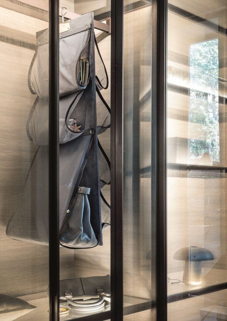 Another relevant news presented for the first time in Cologne is the LEMA Air Cleaning System . The innovative and patented system through which Lema revolutionises the concept of the wardrobe and for the first time, making it play an active role in sanitizing clothing and footwear. The result of more than a year of research and a world exclusive, the LEMA Air Cleaning System, positioned discreetly at the top of the wardrobe, uses nanotechnology and a special UV lamp to generate a photochemical reaction that naturally destroys pollutants, bacteria and mold, purifying the inside of the wardrobe and eliminating more than 90% of bad odours emanating from the stored clothing and footwear.