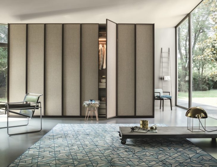 Modular custom-system that in addition to the guarantee of an industrial production, it combines attention to details typical of an accurate handicraft culture. A product in constant development, focused on utmost flexibility: first of all in terms of sizes, but also in terms of models, materials, components, finishes, accessories and equipment. The design develops around basic modules that can be adapted in height, width and depth, consisting of structures and panels: hinged, folding, sliding and aligned. Four ways to decorate an environment thought not only to be neat, but to be a pleasant space dedicated to each individual and the most personal objects. In this way, without design constraints armadio al centimetro can be transformed in endless closets, each with its style and personal refinement. Showcasing at Design Post, Dandy closet is defined by the various souls of the door characterised by the perimetric frame in black metal and large assortment of panels: transparent glass as in Cologne, bronze reflecting glass, lacquered glass in 10 colors, bronze glass with textiled silk-screen printing or decorative fabric.