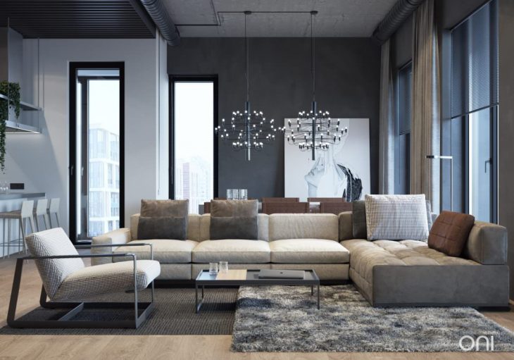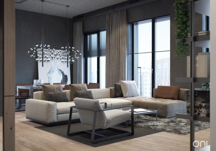 ONI Architects designed this cozy 1,259 sq ft loft located in Moscow, Russia. Take a look at the complete story after the jump.