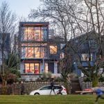 The design of this apartment is the story of nature, flowers, modern art and story of the family, who’s going to live here. Dark, deep color of the walls was chosen as the main color, to create an atmosphere of intimacy and seclusion. Vintage tapestry -formed the basis of the composition, this is a remake of family relic – the gobelin, which is passed from generation to generation. Unusual for this style became a concrete wall in the dining room with hand-painted frescoes of buds pions. This house -some kind of symbiosis, where tender tribute to the family tradition interwoven with contemporary art and unexpected interior solutions, which is the most characteristic for this family. Author trait -is a decorative ring, which is integral to every project of Rosko Family Design, here realized in the form of decorative berry wreath, play along to naturalistic theme and colors of this project. – from the architects