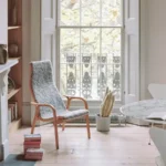 In the sitting room, RMGB placed one of their own sofas, part of the studio’s first collection launching in 2025. The designers paired it with a powerful work by Malian artist Amadou Sanogo and a cedar table hand-carved in California by Dan Pollock. The combination feels lived-in yet composed.