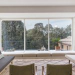 The vision for the living area was a seamless transition and coalescence between indoor and outdoor connecting to the ocean beyond. Smokey grey mirror clad columns enhance the views into spaces even more so, again reflecting light and creating a further dimension of space. A five-metre outdoor Iroko custom timber table bathes in the beauty of its surroundings as it sits invitingly on the terrace, perfect for social or family gatherings.