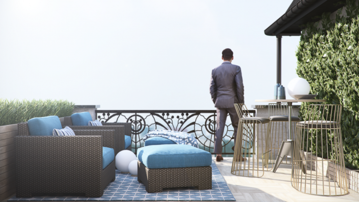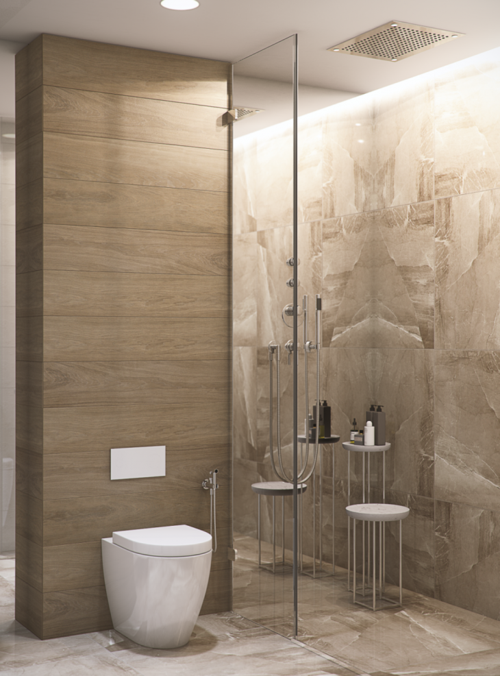 The layout of this apartment provides a cozy day zone which includes the living room, and the kitchen with a small dining table and a bar. The entrance is slightly isolated from the living room by an elegant bronze divider, and by the flooring which clearly defines this two zones. The bedroom benefits of a feature that confers elegance to this apartment – a wonderful terrace almost as big as the bedroom is. Though the apartment doesn’t look laden there’s plenty of storage spaces – next to the entrance, in the bedroom, in the hallway next to the bathroom, in the kitchen, as well as behind the sofa in the living room. So, this apartment provides all the necessary that a family may need to feel comfortable and inspired.