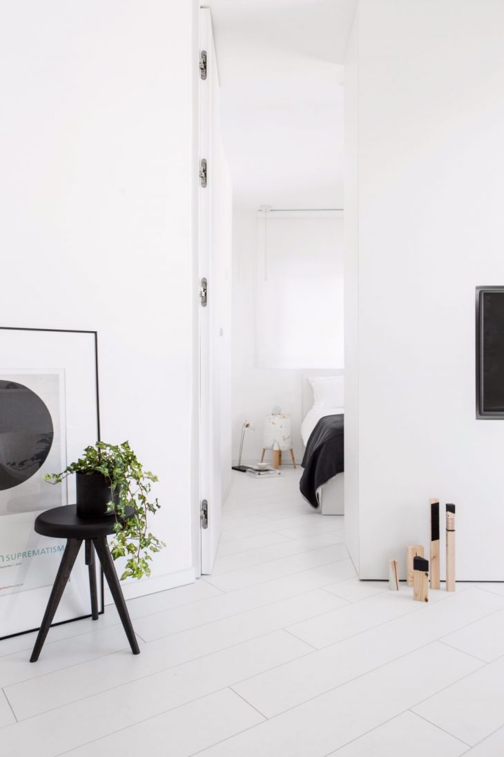 Yael Perry designed this cozy white apartment located in Tel Aviv, Israel, in 2017. Take a look at the complete story after the jump.