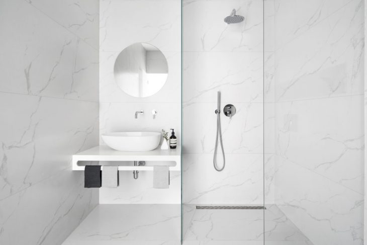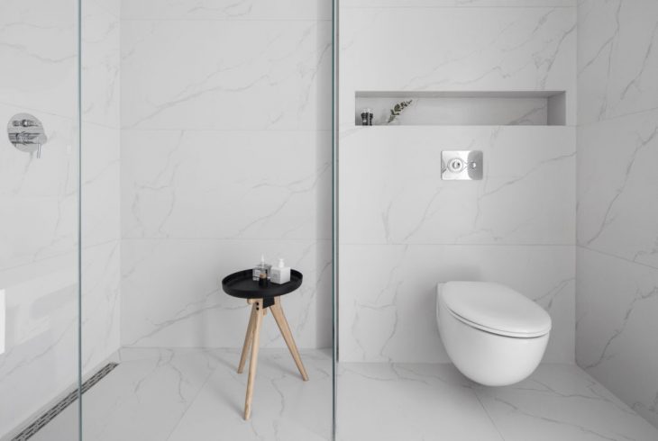 Before renovation, bathroom’s door was located in front of the apartment entrance. All internal walls were destroyed & a new entryway leading to a new minimalist, bright & wide bathroom was created.