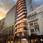 The bright shapes of the modulated ribbons are seemingly spinning about the bowl – a play on the term whirlwind moving across the desert sand. The double façade makes the building seem light, luminous almost translucent, and allows a hint of the activities going on inside the building. Besides being a decorative barrier between interior and exterior the façade design ensures that all interior spaces are shaded at all times, yet allowing plenty of light to enter the building. Maximizing the amount of natural daylight and at the same time keeping out the heat of the sun saves energy significantly and secures high quality indoor climate.