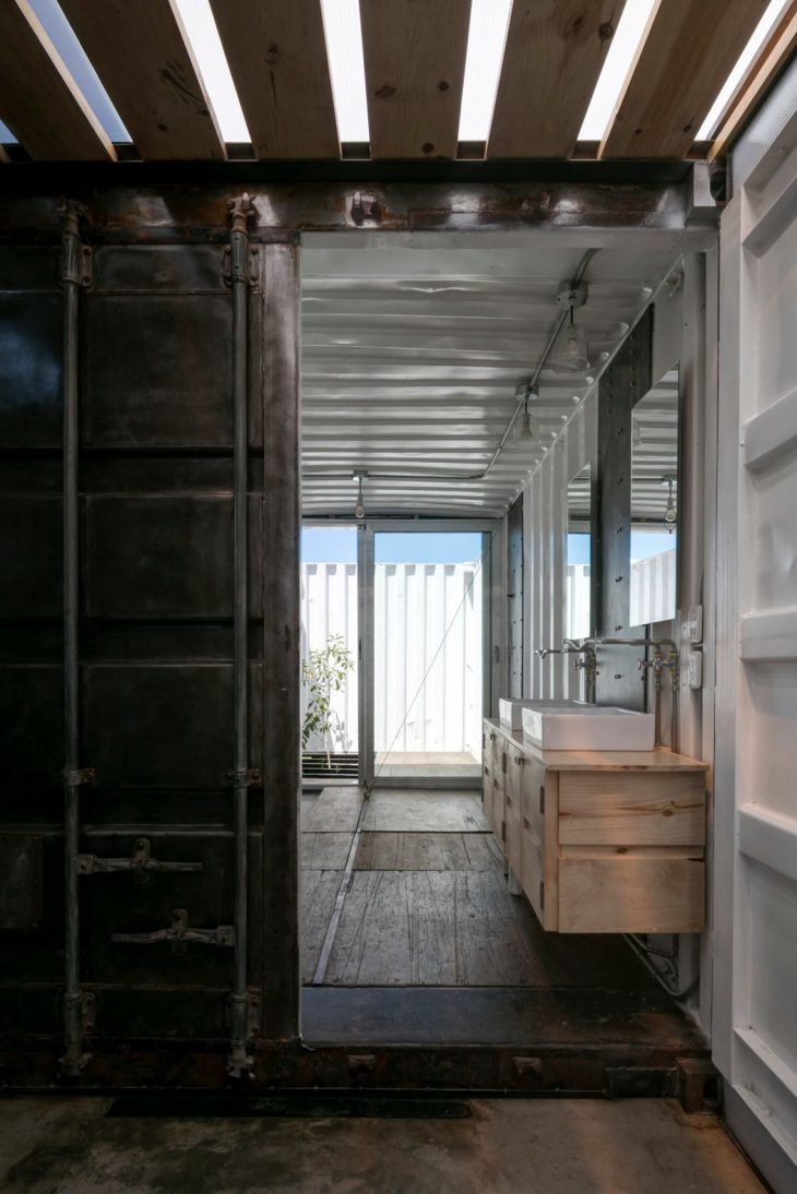 Containers are imperfect. They keep all their scars as a legacy to their dent register and history of uses. These objects were conceived as the complementary spaces of the house: storage rooms, bathrooms, closets and kitchen. They are basically used in their natural state. It was at this point that we considered to not change their original structure and in case of doing so, finding the responsible justification to intervene. By doing so, modifications were strategic and linked to lighting, air circulation and connection between exterior and interior spaces.