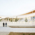 The B777 building represents a paradigm shift in architectural design, transcending traditional industrial and laboratory contexts to immerse itself harmoniously in nature. Selected through an international design competition, Henning Larsen‘s winning proposal crafts a ‘nature campus’ identity for CERN’s Prévessin Campus, situated on the France-Switzerland border. Positioned at the forest’s edge, the circular B777 structure serves as a beacon, beckoning scientists and guests alike to engage with the natural environment.