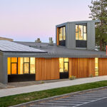 The clubhouse is not just a storage facility for boats; it’s a dynamic community space designed for athletes and visitors. Expansive doors open onto the wooden dock, facilitating smooth transitions into the water, while the open timber interior provides ample space for training and socializing. Large windows offer panoramic views of the surrounding landscape, enhancing the overall experience.