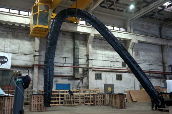 Oskar Zi?ta says that the best ideas are born among dust, dirt and sweat. That is exactly where this piece of art was brought to life. NAWA was born in a special place – former shipyard. This choice was determined by the size of the sculpture which required unusually large production hall and also easy access to the Odra river.