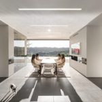 As the creases flow down the facade they start to fold into the volume towards the lower part of the building, naturally forming either an entrance or covered seating area. These coves run all along the building’s perimeter and invite visitors to rest and enjoy the view.