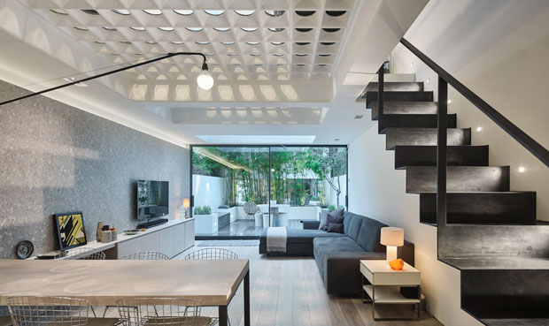 The Perf House by Andy Martin Architecture was shaped for clients who wanted to bring some of the light and openness of their native Sardinia to London. The task involved entirely removing off all existing internal elements of this small Georgian 5-storey terrace house in Belgravia, leaving a vast 6 sided internal volume. Andy Martin Architecture then redesigned the spaces within to deliver an enticing new house project.