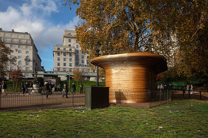 From the architects: The organic-inspired designs for the family of kiosks and new café respond sympathetically to the Grade I listed landscape and embody the ethos of The Royal Parks as a sustainability leader. Mizzi Studio has used sustainable materials and traditional craft techniques, together with state-of-the-art manufacturing methods, to create simple, functional forms that are both striking and elegant. Together with Colicci, Mizzi Studio explored the parks’ heritage and has tailored the design of each kiosk of the new café to the history and nuances of their respective site to create new visitor experiences and make a refreshment stop an integral part of a journey through the parks. The family of nine kiosks, designed by Mizzi Studio, will mark the entrances to Hyde Park and St James’s Park, as well as Green Park, where the first has opened in November 2018. The kiosks are