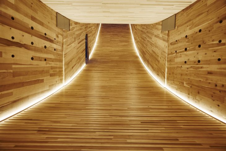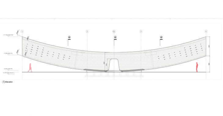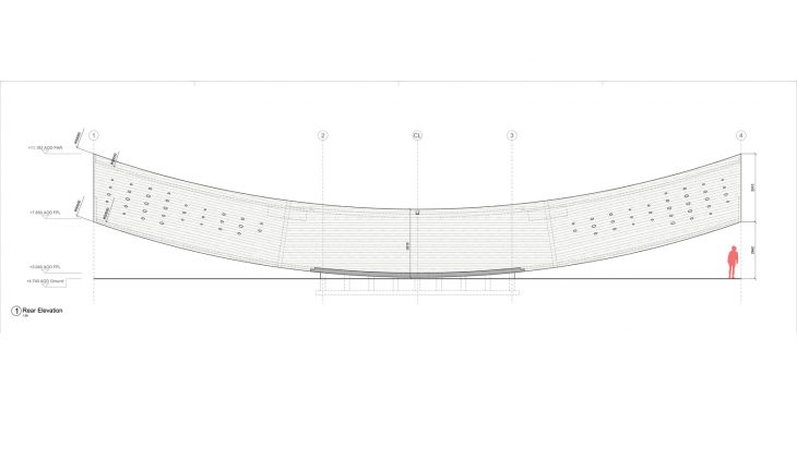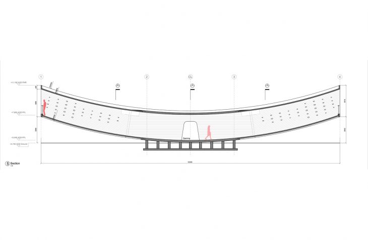 The Smile is the first project in the world to use large hardwood CLT panels, in fact the entire structure is made from just 12 huge tulipwood panels, each up to 14m long and 4.5m wide. Fabricating these panels in a real CLT production plant has been an important step forward, showcasing how the material can be used for commercial projects.