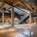 While the exterior is bold and dynamic, the interior adopts a softer, more restrained approach. The use of white as a dominant color creates a calming environment, allowing for selective chromatic accents that emphasize key transitional spaces. This contrast establishes a hierarchy within the design, drawing attention to moments of movement and change while maintaining a cohesive aesthetic. The interiors are designed to facilitate both functionality and comfort.
