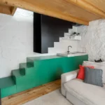 Selective demolition inside the house removed interior partitions and opened up circulation. By choosing which walls to eliminate and which marks to retain, the architects created a space that feels open and continuous. Traces of removed walls remain visible, reinforcing the building’s evolution rather than concealing it.