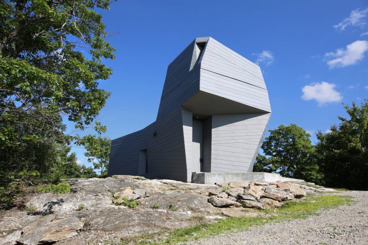 Designed by Anmahian Winton Architects, this private astronomical observatory is located on a remote mountain summit in central New Hampshire. The site is characterized by granite outcroppings and is situated at the center of a three-mile radius “dark” landscape with very little light pollution to obstruct astronomical viewing. Instead of using a traditional dome, the design language features a synthesized architectural form that maximizes usable space and adapts to the geographic context. Discover the complete story after the jump.