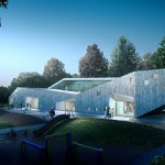The future “Mariehøj culturcenter” draws a clear profile in the landscape. With a new foyer, the culture center will get a new face that invites in all people in Ruderdahl’s municipality and also a heart that can bring together and highlight the many users and activities in the house. Continue for more after the jump: