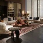 Living Divani closed the exhibition with a meeting zone furnished with Graft tables, Ouzo and Raki chairs, and Ticino stools. Rugs from the Kumo, Sin Titulo, and Carpet Collections anchored the scenes visually. At every turn, the brand used proportion, contrast, and thoughtful construction to explore new ways of shaping modern living spaces without losing tactile interest or design clarity.
