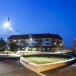 Xemei is a sculptural stool with strong geometric lines contrast, designed by Barcelona-based MedioDesign studio.