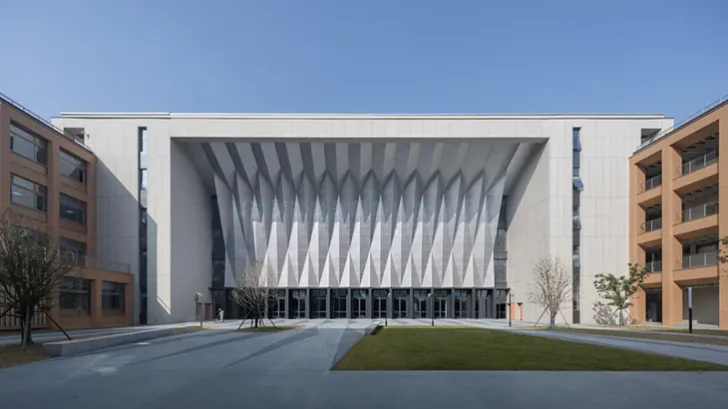 In the Lin-gang Special Area of Shanghai, c+d studio has completed Island City Life, a new campus for the Shanghai High School Senior Division that redefines the relationship between education, landscape, and urban life. Surrounded on three sides by greenery and water, the 48-class residential high school responds to the challenge of density, integration, and well-being with an architectural language that balances rigor and release.