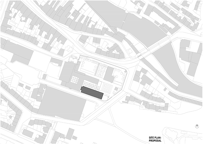 On the south side, the extension follows the direction of neighbouring monastery buildings; on the north side, it creates an inner courtyard for relaxation of students in a connection to the outdoor classroom.Two-part layout scheme opens on ground floor through a glazed recess hall into the courtyard, on the first floor the corridor is oriented to the opened terrace. Classrooms, laboratories and teacher’s offices are organized according to the specific requirements of the school.