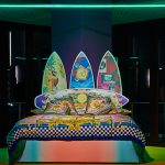 Conceived as an immersive installation, the show’s scenography plunges the audience into the artist’s universe: the runway is transformed into an abstract barrel wave lit by a sunset and tagged with myriad iterations of the letters in “Dior”. A celebration of freedom: of movement, creation and spirit. A joie de vivre Dior holds dear.