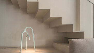 Among the standout pieces is Genta Ishizuka‘s suspended lamp, featuring layers of glossy lacquer that reveal glimmers of gold, creating a mesmerizing glow. Dame Magdalene Odundo‘s leather hanging lamp, with its sharp peaks and experimental departure from her usual vessels, is another highlight. Enrico David‘s table lamp, resembling a standing figure against an illuminated onyx disc, and Hafu Matsumoto‘s woven bamboo table lamp showcase the artists’ unique visions and craftsmanship.