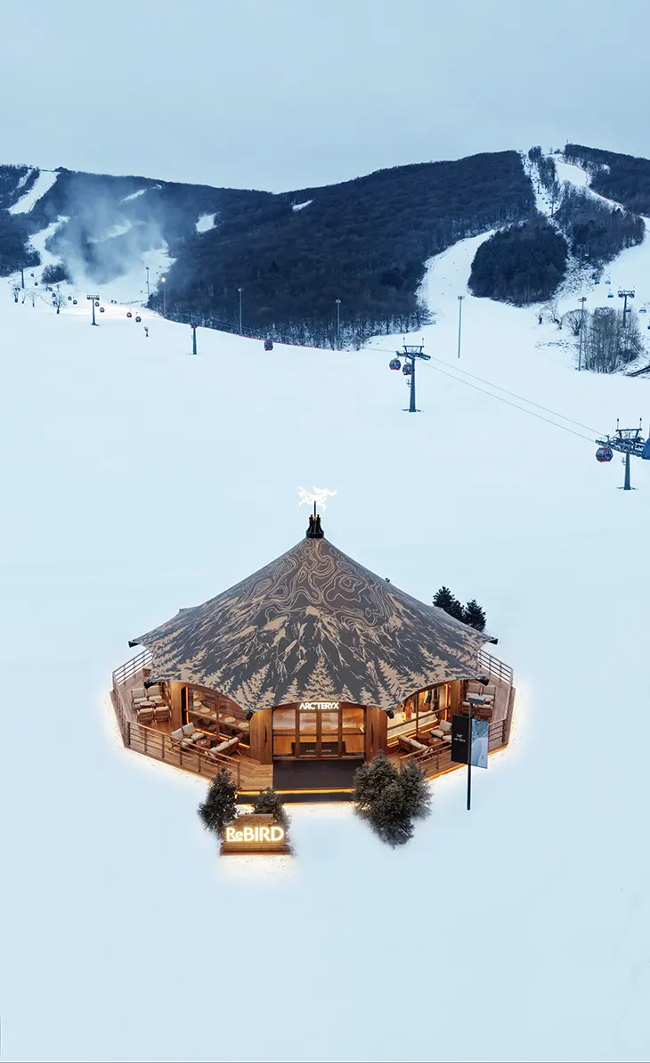 Set within the expansive terrain of Songhua Lake Ski Resort, the Arc’teryx Alpine Touring Experience Space introduces a focused approach to spatial design shaped by performance, environment, and use. STILL YOUNG transforms the original ReBIRD™ pop-up into a permanent alpine hub that operates across training, repair, and social exchange. The project responds directly to its location, where extreme climate conditions and high skier traffic demand durability, clarity of movement, and immediate functionality.