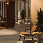 The JW Anderson language is expressed here with a Milanese accent and includes oblique references to the city’s bourgeois tendencies, which are very apparent in the neighbourhood. Following that, the trademark aluminium scaffolding and display structures, in addition to the neon sign on the front of the JW Anderson Milano Store, are combined with genius loci components such as the traditional, handmade terrazzo tile flooring in a bespoke blend of hues, and Walnut fluted panels covering the two major pillars inside the building.