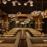 Inspired by the architectural style of Stripped Classicism, Galerie Noir’s exterior exudes a sense of modernity while paying homage to the past. Bold black concrete walls with tall vertical slits evoke classical colonnades, creating an imposing yet serene atmosphere. Inside, a juxtaposition of natural wood and industrial concrete embodies Songzio’s dualistic approach to creativity, offering visitors a visually striking experience.