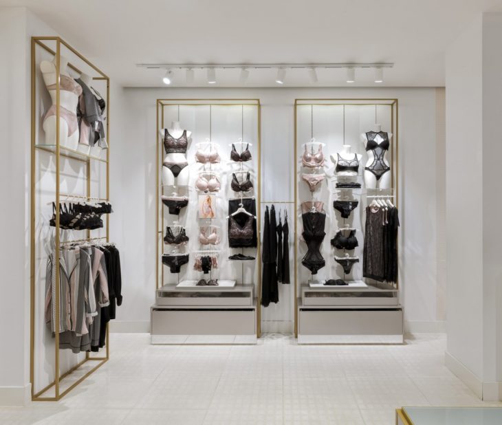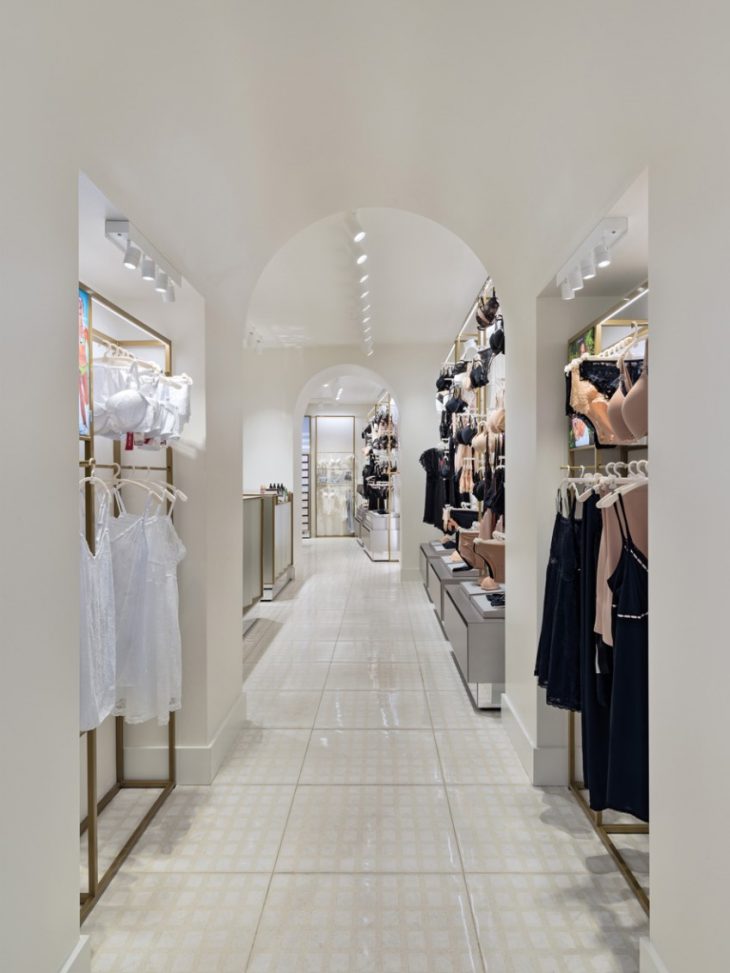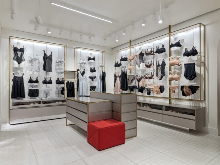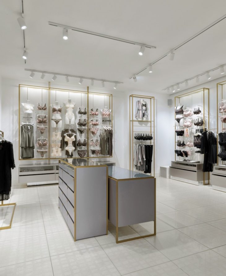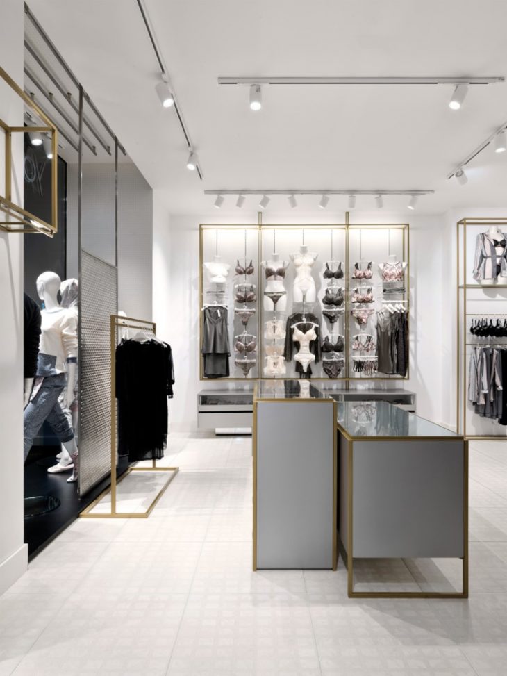 From the architects: The client is a famous women’s lingerie company, the designer one of the most famous architectural firm in the fashion world. The meeting between Yamamay and Piuarch arises from the desire to bring a fresh look to the glamour of the Italian giant’s lingerie collections; an image that can express the brand’s philosophy – based on the concepts of lightness, softness, brilliance, geometry and symmetry – in a dynamic, innovative retail experience that can be adapted to the more than 1300 stores it has opened in less than twenty years in Italy and abroad.