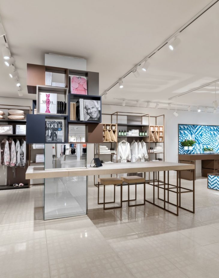 The space is light, luminous and soft, inspiring extremely rewarding visits, during which the customer’s loyalty is also gained through the building of a real experiential platform that combines interior design, product and extra services – available at the main stores – such as a corner for selling plants and flowers, bookcases and home accessories.