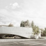A row of old trees was preserved by letting the western facade curve elegantly.