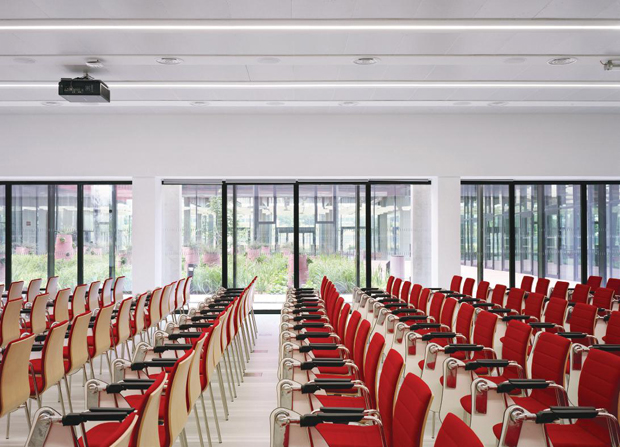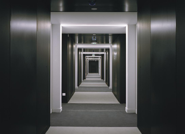 This retreat on the Saclay plateau, sometimes far from an employee’s usual place of work, is an opportunity for staff to learn and train, but also to meet, exchange and re-energize themselves in order to consolidate a common culture. On top of the spaces reserved for learning courses there are reception areas, social life gathering spaces, relaxing lounges and even bedrooms: a variety of programs that together contribute to the exceptional chronotope of an atypical 24 hours per day operation. The idea of an American style campus is reinterpreted here vertically in this unitary building that is bringing people together in multi-functional spaces which is highly ambitious in terms of getting people to mix with others with dense, proven corollary. – from the architects