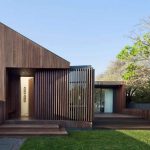 In a conservative residential pocket close to North Sydney,a workers cottage perches on top of a hill looking south-east towards striking views of Sydney Harbour. The idea behind the design was to retain the existing character of the cottage to the front – its low slung and strong horizontal lines -and place a more contemporary two storey addition at the back behind the ridge. The new upper level is fully clad with CNC routed plywood shutters,it pierces the ample roof plane to the front of the house with a wide dormer window that is curved at the corners. Internally, the skill of Associate Architect, Sean Johnson and Interior Designer, Romaine Alwillhas successfully married the old and the new: polished concrete and the existing dark timber floors, oversized glass sliding windows and the original leadlight sashes. Asemi-transparent perforated black steel staircase cascades down through the centre of the house, from an openable skylight in the roof to the ground floor, allowing generous amounts of light to bathe the entrance hall. – from Luigi Rosselli Architects