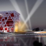 The constraints of the site suggested a triangular plan: accordingly, the 28-storey tower is formed by six interlocking isosceles triangles rising up from a triangular base, each of which creates a single elevation. The lowest and uppermost floorplates are triangular, while the intermediate floorplates are hexagonal in shape, changing at each level as the elevations expand or contract and forming a perfect hexagon at the structure's midpoint. The resulting building profile is considerably more elegant and slender than a standard orthogonal block. As the tower descends the building's metal skin peels back to create a series of wind scoops that protect the public spaces beneath from the gusting effect common at the base of towers.