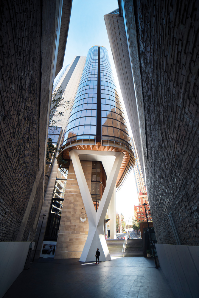 At the heart of this project is both workplace design and city making. We have sought to make a building that reinterprets and honours the uniqueness and history of this place, positioned at the edge of Sydney’s Tank-Stream (the first water source of the colony of New South Wales). We envisaged a different type of city tower; warm, human and responsive, to create a healthy and sustainable workplace.