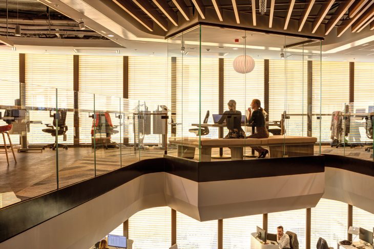 This tower creates work environments that are open, flexible, enabled and connected with its fully glazed floors, extensive natural lighting and integrated LED lighting system.